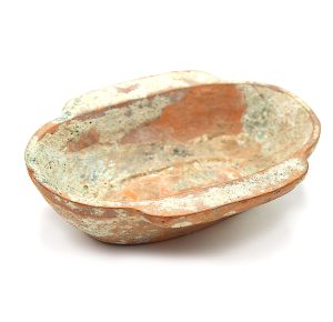 Used for rituals and ceremonies, lead green glazed earthenware wing cups were popular burial objects. The tomb’s humidity caused the lead to oxidize to a lustrous, prized iridescent, silver-green.