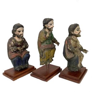 This rare trio of carved Apostles emanate a sense power and feeling that conveyd the emotion and spiritual character of the figures and what they represent. Each mounted on 2-tiered wood base.