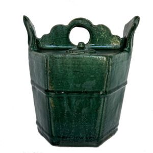 $395.00Original price was: $395.00.$270.00Current price is: $270.00.H: 9″ W: 8.375″ D: 5.5″ | free shipping within continental u.s.Apple green glazed teapot typical of Shiwan kiln pottery known for its brilliant flambé glazes in the 18-19th century. Hexagonal shape with yoked rounded handle with spiral decorations that adds a decorative touch.