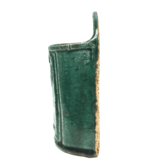 Decorative utilitarian Shiwanware pieces are recognized for their fine modeling, vivid expression, and colorful apple-green and drip glazes. Chopsticks were commonly stored in wall pockets with a hole for mounting. Covered with auspicious symbols, they were often part of a bride’s dowry as “chopsticks” is a pun for “speedy arrival of sons.”