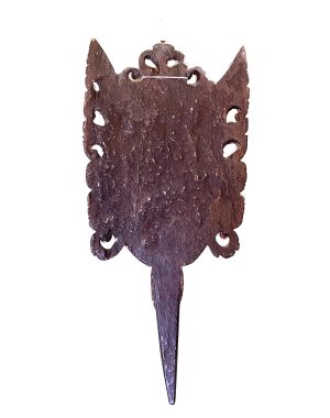 Rare vintage carving dedicated to Dewi Sri, Balinese Goddess of Rice. was probably made for a home shrine or small rice field temple . Hole near the bottom indicates it may have been part of a larger decorative scheme.