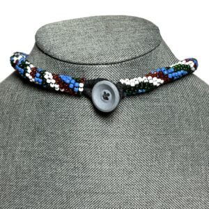 Choker with Tibetan turquoise and amethyst beads. Combination believed to foster calm, inner peace, emotional and spiritual well-being, and deepen connections.