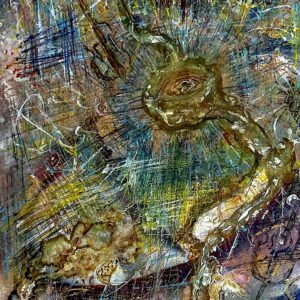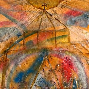 In Christ’s Sacrifice, Anush Babayan evokes the divine mystery of redemption through an ethereal, cross-like form that rises into radiant light. Here layers of radiant texture and color suggest both the pain and transcendence of spiritual transformation.