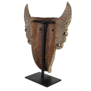 Timor’s religion has been described by Barbier as ritual exchanges between persons and social groups with their ancestors and fertility spirits. Timorese believe they can be upset by wicked forces, sickness, infertility and other forces, but particularly by the failure of the living to make suitable sacrifices to ancestral spirits. The departed protect and bring prosperity to the living as long as they are honored properly, so there is a close reciprocal link between the deceased and the secular world. Ancestors mediate between the living and the unseen world for living relatives. Their masks are used in animist veneration rituals, protective ceremonies and ritual dances or ceremonies tied to fertility, harvest, or funerary rites Besides masks, the living s are obliged to carve ancestor effigies to honor departed souls for them to occupy and rest in during their village visits. Many ceremonies usually occur in a house room known as “the womb” where a pillar supports beams rising up to the roof struts. This functions symbolically as an axis mundi (the center of the world or cosmic axis) that connects heaven and supports a simple altar above the floor to hold religious artifacts, protective fetishes and charms to ward off evil. So masks, effigies and fetish objects are protective and magic objects used throughout Indonesian islands in. Timor masks were rarely seen in the west until the mid-1970s.