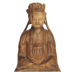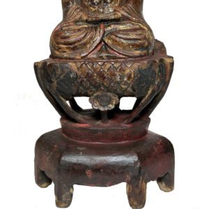 Guanyin’s elegance, compassion and serenity are emphasized in this provincial carving on 3 tiered high lotus throne on a hexagonal base with carved patterns. Portrayed in meditation with flowing robes this consecrated image was designed for personal veneration in a home setting.